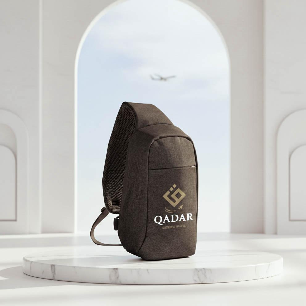 The Qadar Mini Travel Bag is lightweight and practical, ideal for carrying small essentials during trips or outings.